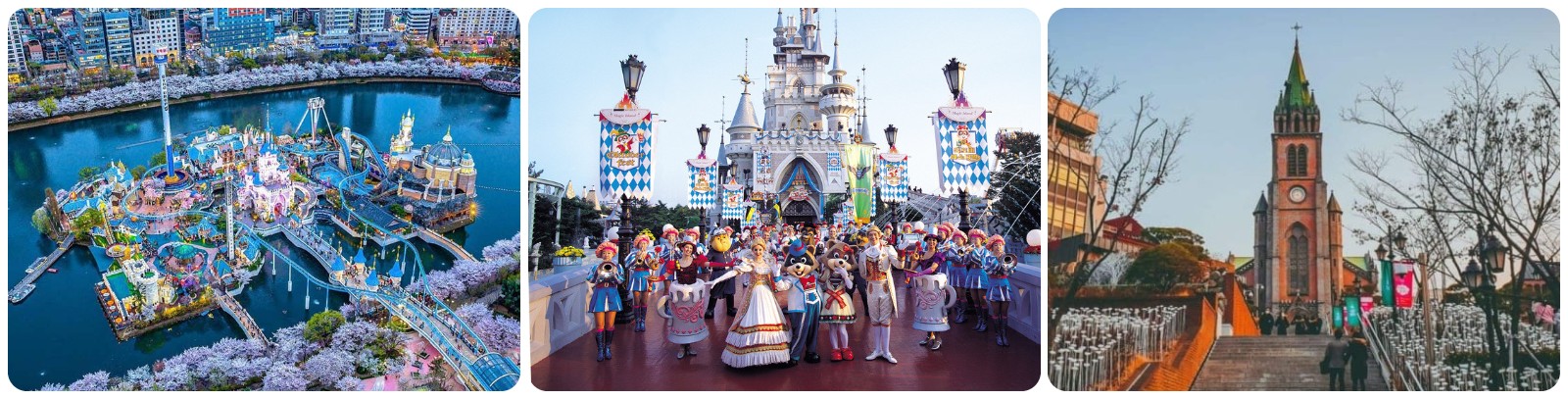 - Công viên chủ đề Lotte World là tổ hợp vui chơi - giải trí - mua sắm - văn hóa nổi tiếng bậc nhất Hàn Quốc, thu hút hàng triệu lượt khách mỗi năm. Được chia thành hai khu vực chính là Lotte World Adventure (công viên trong nhà lớn nhất thế giới) và Magic Island (khu vui chơi ngoài trời nằm giữa hồ Seokchon), Lotte World chinh phục cả trẻ em lẫn người lớn với không gian rực rỡ, các trò chơi đa dạng, công nghệ hiện đại và các show diễn đậm chất Hallyu.