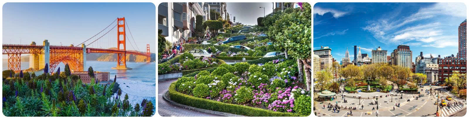 • Quảng trường Mỹ - Union Square - Trung tâm tài chánh, hành chính, toà thị chính thành phố, toà nhà Trung tâm tài chính cao nhất San Francisco.
