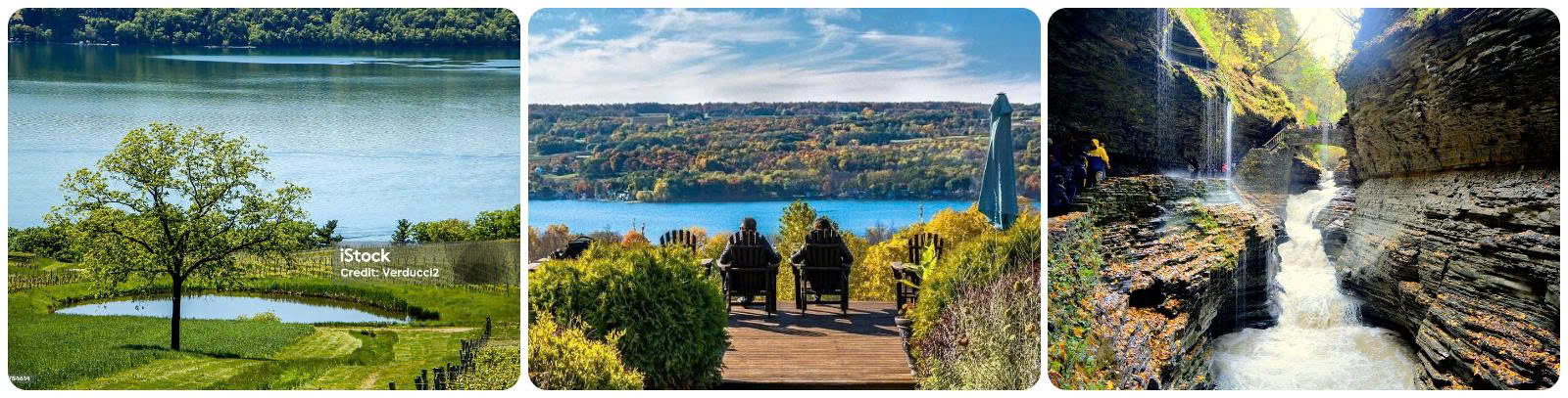 • Trên đường di chuyển đoàn dừng chân chụp ảnh tại Hồ Finger Lakes. Khu vực Finger Lakes của New York trải dài qua 11 hồ trong một khu vực trước đây được bao phủ bởi các sông băng. Hai hồ phổ biến nhất là hồ lớn nhất và sâu nhất: Hồ Seneca (618 ft) - nơi có Công viên Watkins Glen mang tính biểu tượng và Hồ Cayuga (435 ft) - đối diện với Đại học Cornell ở Ithaca.
