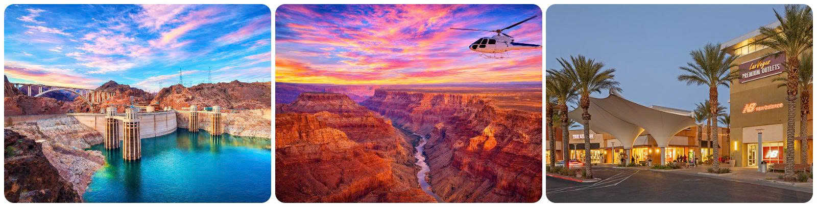 • Quý khách đi tham quan Hoover Dam - Đập Hoover có tên gọi là đập Boulder là một đập vòm bê tông trọng lực trong Black Canyon của sông Colorado, trên biên giới giữa các tiểu bang Arizona và Nevada của Hoa Kỳ được xây dựng giữa năm 1931 và năm 1936 trong cuộc Đại suy thoái. Việc xây dựng dập là kết quả của một nỗ lực to lớn liên quan đến hàng ngàn công nhân và lấy đi hơn 100 sinh mạng.