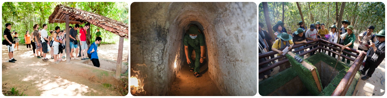 - Sau khi xem phim tư liệu, du khách trải nghiệm chui hầm 70m – Con đường từng che chở hàng ngàn cán bộ chiến sĩ và nối liền các khu sinh hoạt, học tập, cứu thương năm xưa. Đây là phần trải nghiệm hồi hộp và ấn tượng nhất tại Củ Chi.