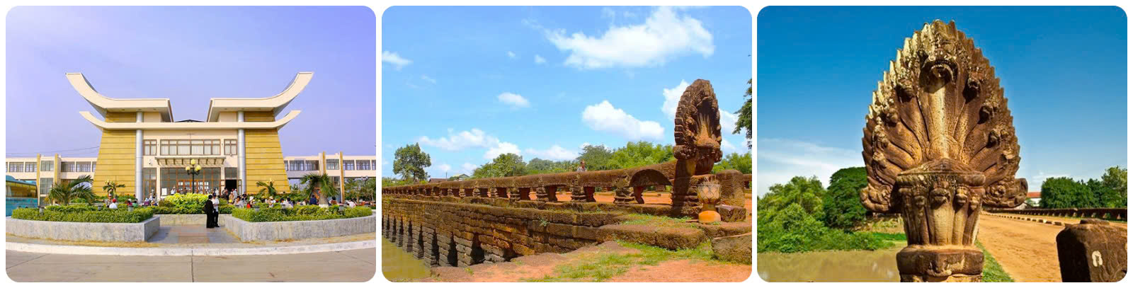 - Cầu Rồng nghìn năm tuổi (Cầu Kompong Kdei): Nằm trên quốc lộ số 6 trên đường vào cố đô Siem Reap, cây cầu vẫn sừng sững qua bao nhiêu năm tháng dù nó được xây dựng từ thế kỷ 12 (Năm 1186) dưới thời vua Chayravaman VII.